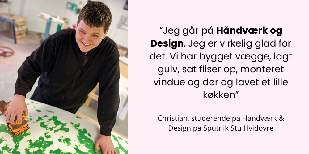 Håndværk & Design er for dig, der gerne vil arbejde kreativt – både med klassisk værkstedsarbejde og med mindre, detaljerede projekter. Her spænder arbejdet fra brug af sav og elværktøj til finmotoriske opgaver som smykkearbejde, perleprojekter og andre præcisionsopgaver.